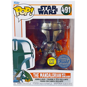 - Star Wars The Mandalorian - The Mandalorian with Darksaber Chrome Glow Exclusive Pop! Vinyl Figure